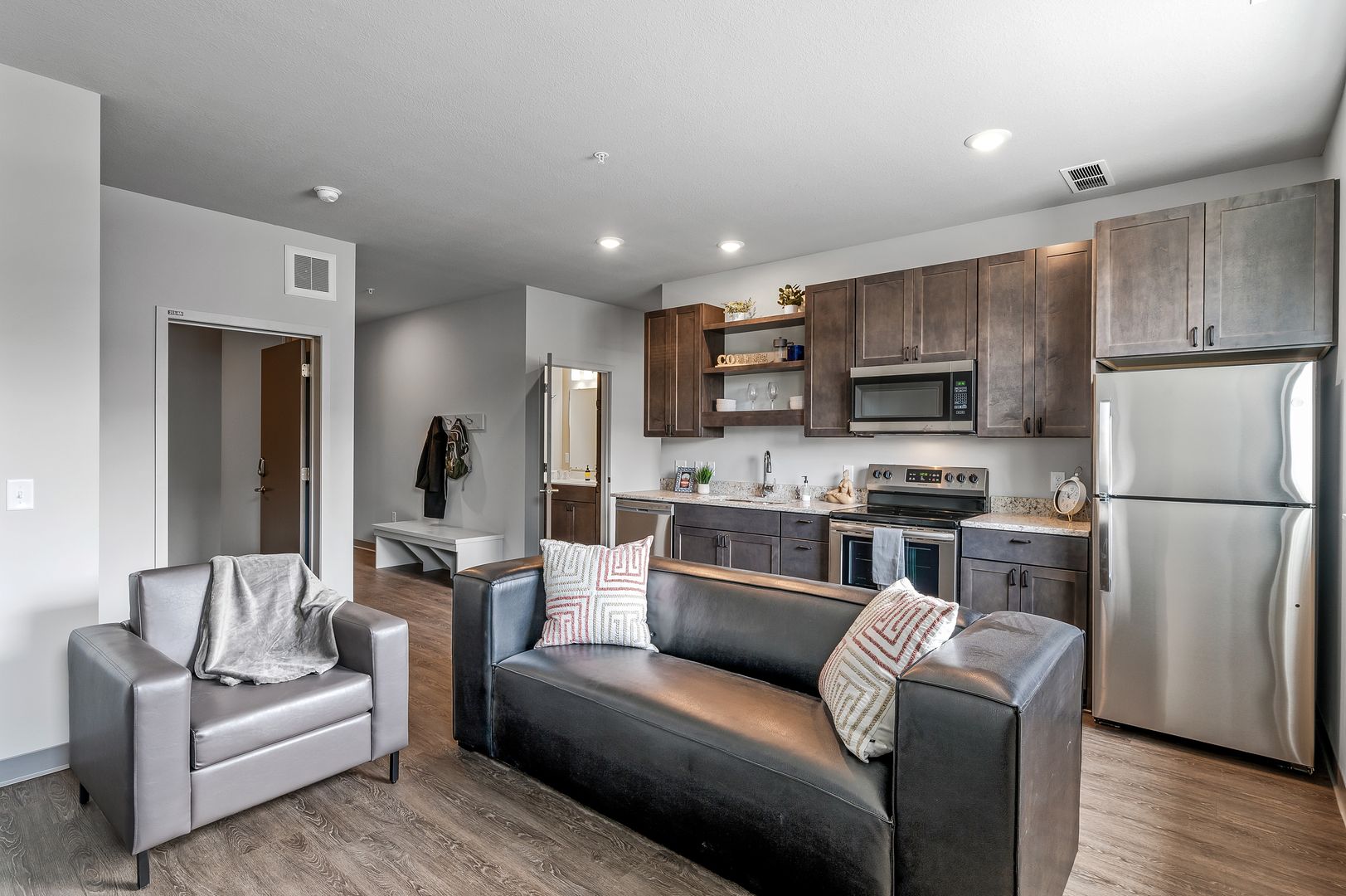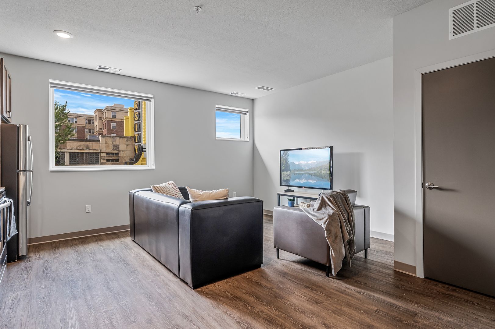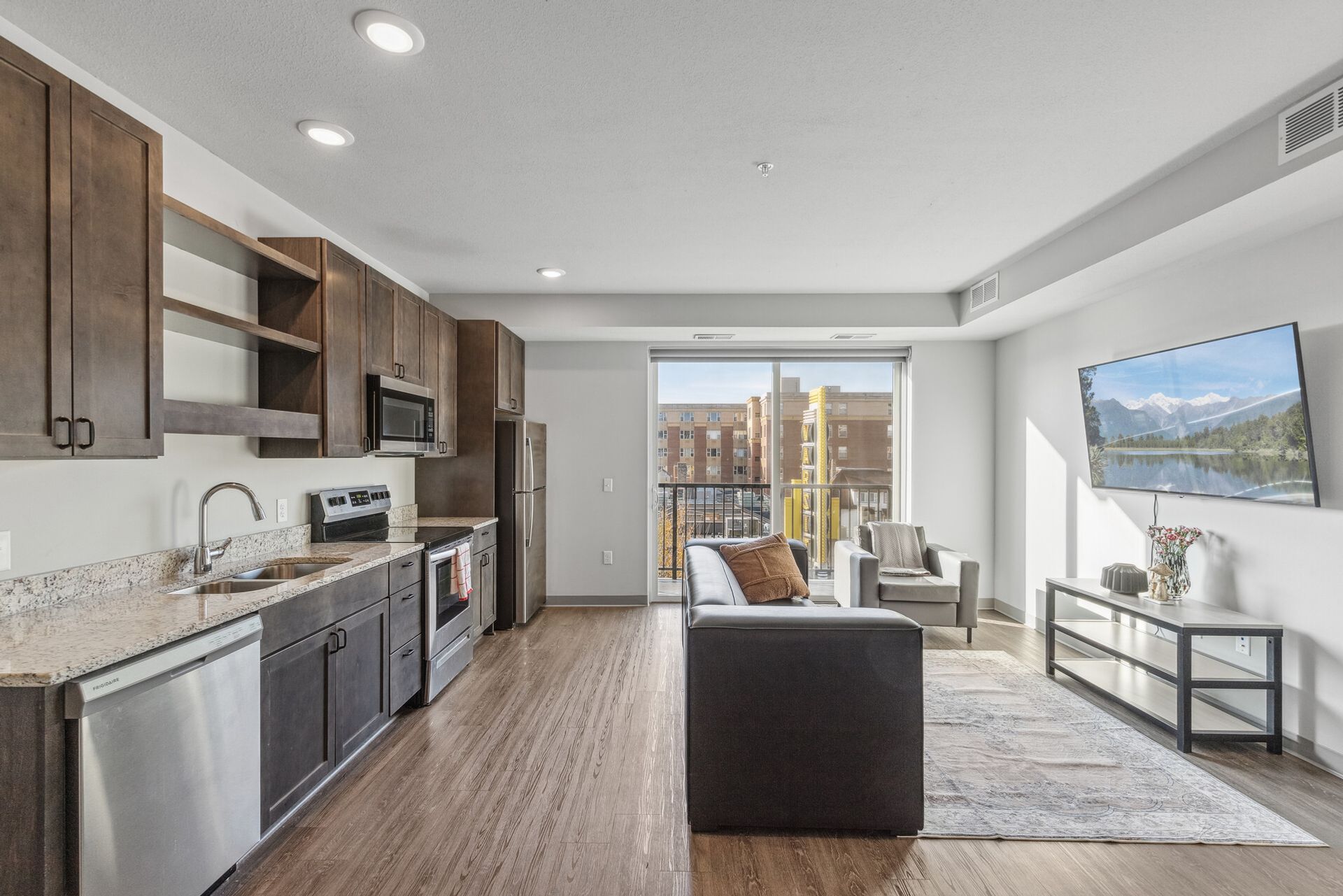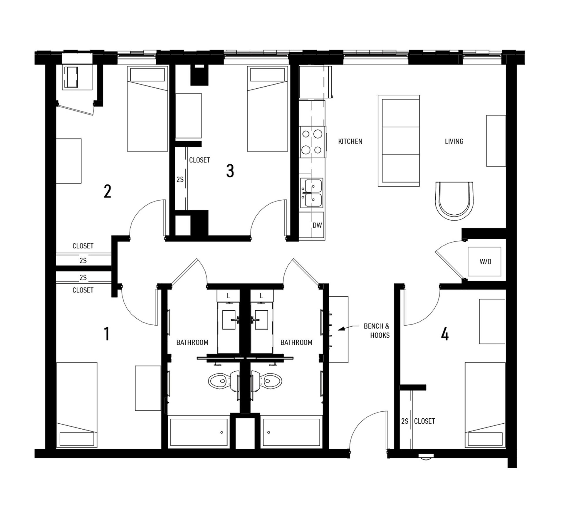 This large 4-bedroom apartment on the second floor is south facing with Dinkytown views and features an abundance of natural light.